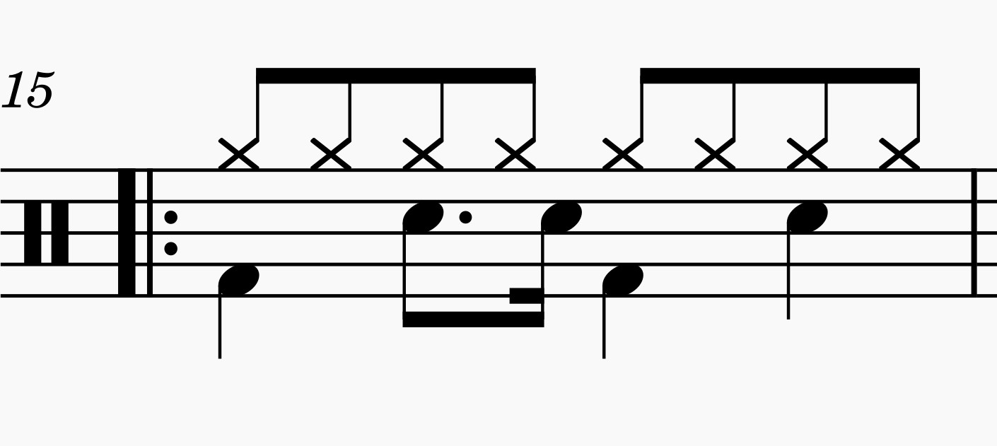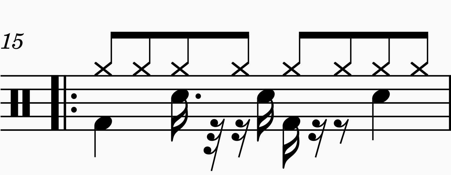 Welcome to my blog where I will be exploring the art of drum set notation using notation software, specifically Musescore 4. This is an 8 week project, where I have been delving into the vast potential of drum set music, from learning to write basic rock measure grooves to maybe not so basic rock grooves, and eventually different styles. In my journey so far, I’ve learned to write basic rock measure grooves using a grid system for writing, which last week I opened the floodgates of complexity due to the syncopation within the bass drum. This week I plan to push even further by applying the concept from last week and using it to create even more complexities by introducing more notes to interact with, mainly focusing on the snare drum.  Join me as I continue to explore the exciting world of drum set notation!